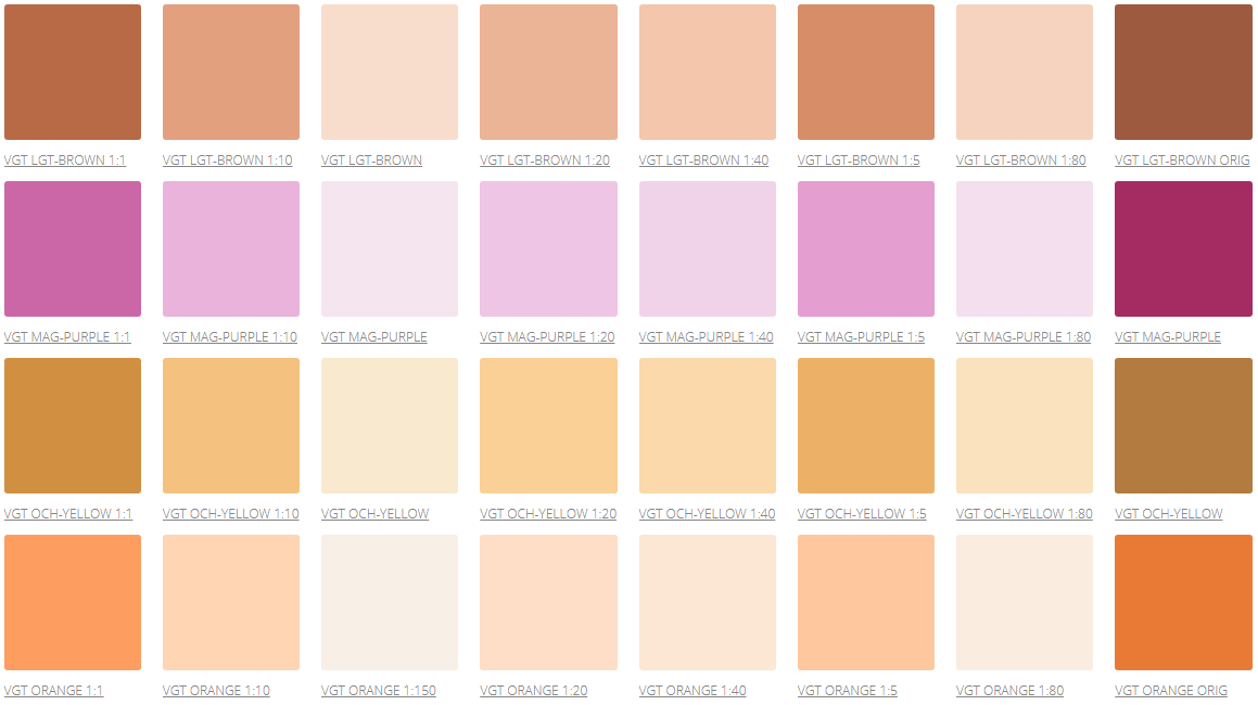 В данном каталоге вы найдете оттенки, которые подойдут для любых типов красок и эмалей, которые создают укрывную непрозрачную пленку.